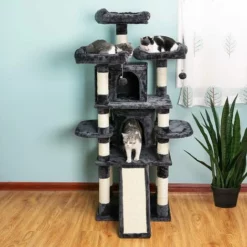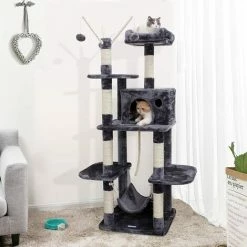 FEANDREA Arbre à Chat XXL, Tour De Jeux 168 Cm, Gris Clair Par SONGMICS PCT019W01 – Gris Clair