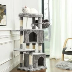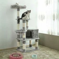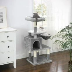 FEANDREA Arbre à Chat Multi-Niveaux, Hauteur 110cm, Niche, Gris Clair Par SONGMICS PCT52W – Gris