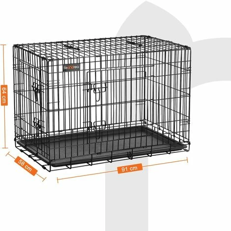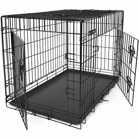 Teckel, Bouledogue français, Border Collie : Cette cage de 92,5 x 57,5 x 64 cm convient aux petits et aux moyens chiens de moins de 30 kg et de moins de 60 cm de haut. Les 2 portes facilitent l’entrĂ©e. Le grillage pas trop fin permet une bonne aĂ©ration et une visibilitĂ© optimale.