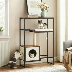 - Meuble rustique : Avec un mélange de cadre en acier et de panneaux d’aggloméré, cette maison pour chat rustique s’harmonise avec différents styles de décoration intérieure. Elle est durable, les chats auront du mal à la rayer