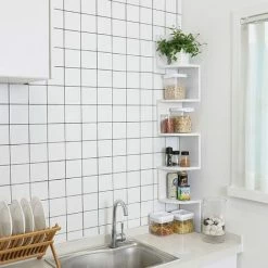 SONGMICS Étagère D’angle Étagère Murale Étagère En Forme Zigzag Bibliothèque Blanc LBC20WT – Blanc