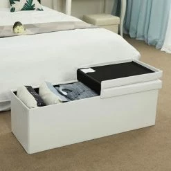 SONGMICS Coffre De Rangement Pouf De Rangement Gain De Place Pliable Blanc 76 X 38 X 38 Cm LSF106