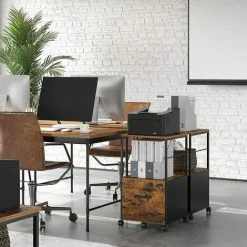 VASAGLE Caisson Avec Tiroir Et Compartiment Ouvert, Meuble De Rangement Bureau, Pour Dossier Suspendu, Format A4, Support D’Imprimante, Roulettes, Style Industriel, Marron Rustique Et Noir Par SONGMICS OFC044B01 – Marron Rustique Et Noir
