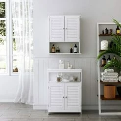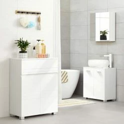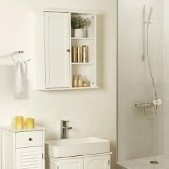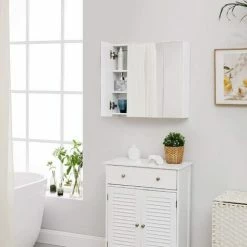 SONGMICS Armoire De Toilettes Salle De Bains Blanche Murale Avec Portes Et Miroirs LHC002 – Blanc