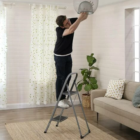 - Le plus important chez une échelle ? La stabilité ! Cette échelle pliable à 3 niveaux est fabriquée en acier et elle supporte jusqu’à 150 kg. Lorsque vous changez une ampoule, vous pouvez vous concentrez sur ce que vous faites sans avoir peur