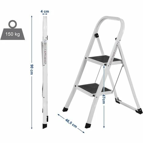 - Polyvalent : Cet escabeau est extrêmement utile comme marche ou comme aide à la montée pour un usage domestique ou au travail. Il trouve aisément sa place dans la cuisine ou au bureau, devant une armoire haute