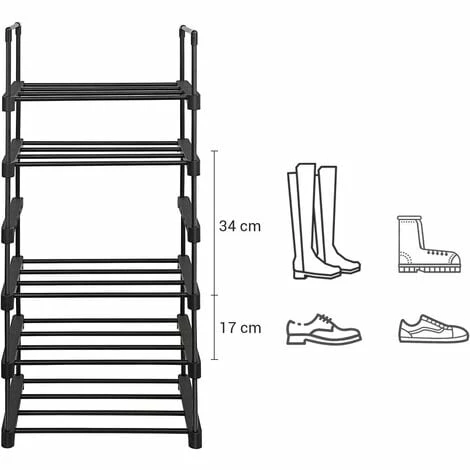 - ASSEMBLAGE FACILE : Ici, aucun outil est nécessaire. Il suffit d’emboîter les tuyaux en fer en les fixant avec les raccords en plastique de qualité et le tour est joué ! Vous pouvez commencer à ranger vos pantoufles, vos baskets, vos talons, vos sandales et vos ballerines dès maintenant !