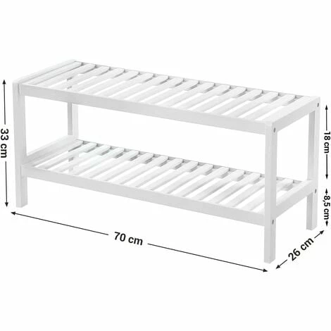 Accueille une diversité de chaussures: Simple et compact, ce banc à chaussures de 70 x 26 x 33 cm (L x l x H) peut supporter jusqu’à 10 kg par étagère. Il accueille donc tous les genres de chaussures. Et surtout, n’oubliez pas l’espace entre le sol et l’étagère inférieure prévu pour les pantoufles. Il est plus utile que vous ne le pensez. Faites preuve de créativité !