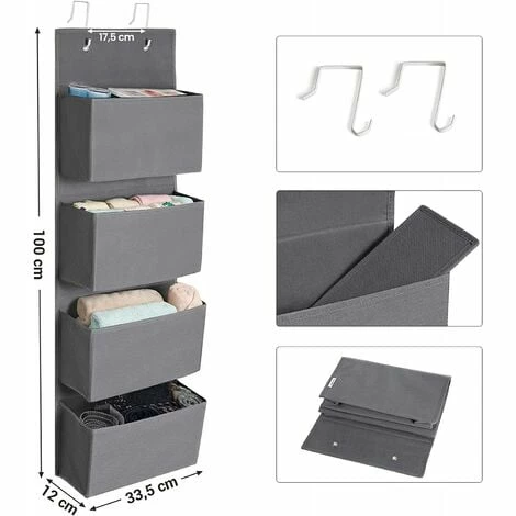 Où le mettre ? Avec un revêtement en tissu non-tissé de 80 g/㎡ et des renforts intérieurs en carton épais, cette étagère à suspendre à 4 compartiments vous permet de ranger votre linge, des produits pour bébés ou bien tout ce dont vous avez besoin.