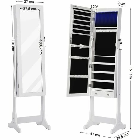 1.Armoire à bijoux et miroir sur pied 2 en 1 et à ranger en toute sécurité – Miroir de vêtements avec grand espace de rangement. La porte est équipée d’une serrure et de 2 clés au design art nouveau. Si des visites curieuses sont à la maison, vous pouvez également fermer l’armoire