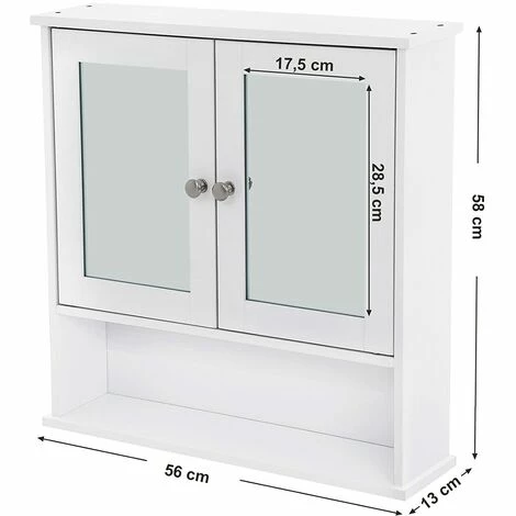 - Grâce à sa dimension adéquate de 56 x 13 x 58 cm (L x l x h) et à son apparence sobre et moderne, cette armoire murale s’intégrera parfaitement dans votre salle de bains