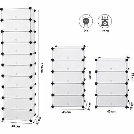- Grande capacité – Avec la dimension de 40 x 30 x 17 cm (L x l x h), chaque cube a une capacité de 26,8 L, donc cette armoire de 10 cubes a une contenance de 268 L, qui permet de ranger parfaitement les chaussures et les jouets d’une famille