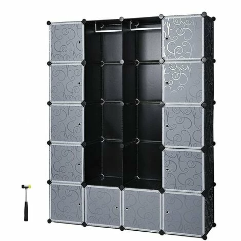 Haute sécurité:4 coins de plaque sont fabriqués à partir de fils de fer légèrement vers l’intérieur incurvés, ainsi les pièces et les panneaux peuvent être liés étroitement, la fente est tellement minime après la struction, que la poussière et les insectes ne peuvent pas entrer. 12 verrous sont offerts pour que les portes ne s’ouvrent pas involontairement. De cette façon, vos articles ne tombent pas et sont protégés de la poussière. Il suffit de fixer les verrous en plastique dans la fente des croisillons. | Facile à nettoyer:les plaques sont étanches, résistant à la moisissure et la poussière, facile à entretenir, la peinture ou la saleté peuvent facilement être enlevés. D’ailleurs, la matière de ce produit est glissant, anti-griffe et résistant. | Marteau en caoutchouc à manche tubulaire gratuit:Très pratique maillet de qualité pour la fixation de tous les accessoires, répond aussi à votre usage domestique, adapté pour une utilisation prolongée. |