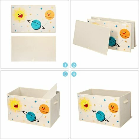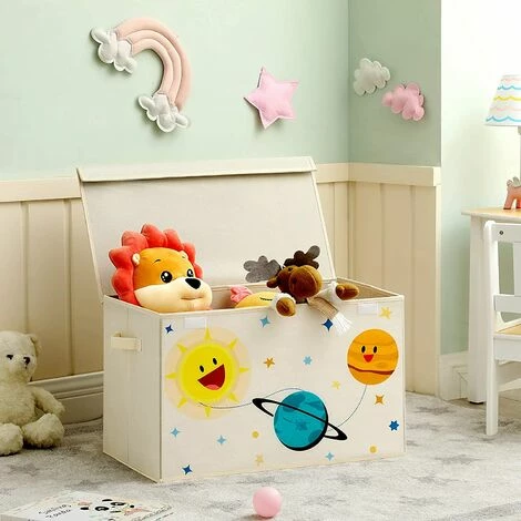 Tout en s’amusant ! Ce grand coffre à jouets vous aidera à garder une maison propre tout en apportant une touche déco super mignonne pour les enfants. En plus, les motifs sur le thème de l’espace inciteront également les enfants à ranger eux-même leurs jouets.