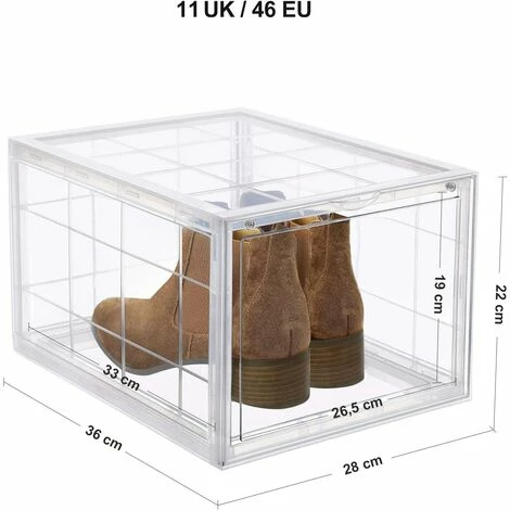 - FINI LES CHAUSSURES PARTOUT : Vous en avez marre des chaussures qui sont éparpillées partout ? Ces 6 boîtes à chaussures (dimensions internes : 26,5 x 33 x 19 cm) sont assez larges pour accueillir des paires de chaussures jusqu’à la pointure 46