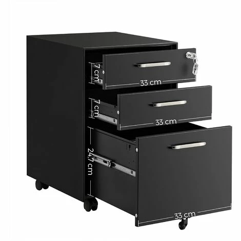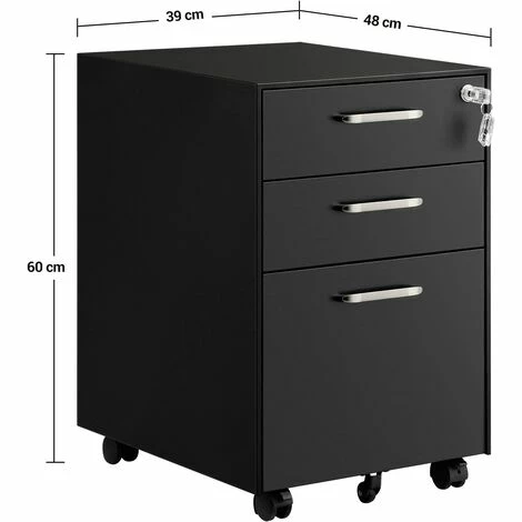 - Ce que vous obtenez : Un caisson de bureau à 3 tiroirs profonds, une serrure pour sécuriser des documents et 5 roulettes pour la déplacer facilement. Donnez un peu plus d’espace de rangement à votre bureau !