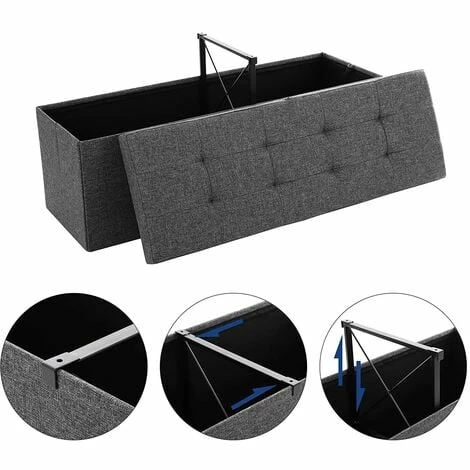 1. Relevable et pliable – Le couvercle du banc peut être enlevé par ses deux côtés, ce qui vous permet de déposer ou de retirer vos objets rapidement sans enlever la totalité du couvercle. Ce banc est aussi pliable: vous pouvez le plier en cas de non utilisation pour économiser de la place