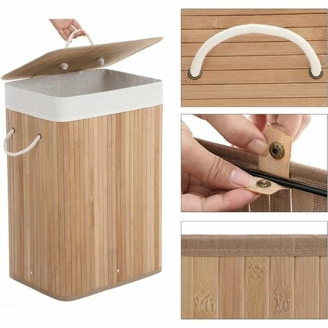 – Le panier est équipé de poignées de sorte qu’il puisse être facilement déplaçable. Ce panier à linge en bambou peut être démonté et plié lorsqu’il n’est pas utilisé.