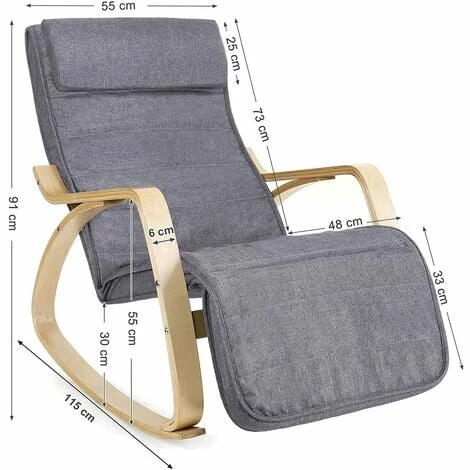 - Repose-pieds réglable sur 5 positions – Le repose-pieds peut être réglée sur cinq inclinaisons afin que vous ajustiez votre position assise au mieux. Le fauteuil à bascule vous offre la possibilité de rester assis de manière ergonomique et détendue.
