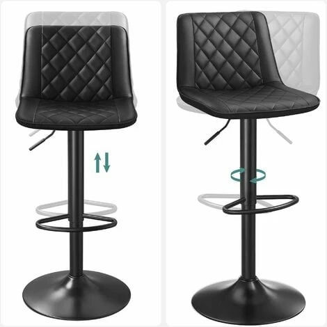 - DU CONFORT : D’une largeur de 47 cm, les sièges sont rembourrés de mousse et revêtus de PU agréable au toucher. La hauteur de l’assise est réglable entre entre 60,5 et 80,5 cm afin que vous puissiez vous asseoir et profiter de l’ambiance du bar