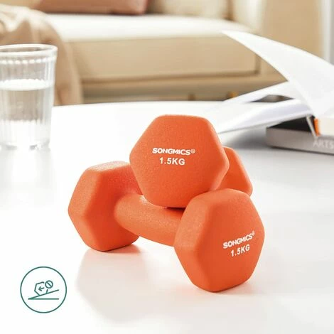 Grâce à leur forme anguleuse, les haltères ne roulent pas. Les haltères en fonte sont compacts et prennent peu de place. Le revêtement en vinyle est agréable au toucher, il protège le sol des rayures.