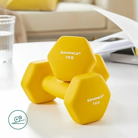 SONGMICS Lot De 2 Haltères Courts En Vinyle 2 X 1 Kg, SYL62YL – Jaune