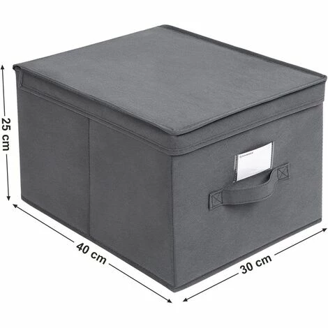 | Cette boîte de rangement d’une grande capacité non compartimentée (40 x 30 x 25 cm (L x l x h)) vous permet de ranger librement des vêtements, des jouets, des livres, des magazines, etc. | Un label sophistiqué: Une fenêtre en PP avec étiquette vous permet de noter ce que vous ranger et de le retrouver facilement. | La poignée latérale facilite le déplacement. | Vous pouvez plier le produit en cas de non utilisation, peu encombrant et facile à stocker. |