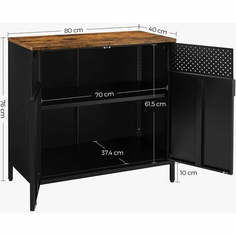 1.Pour une maison stylée : Une surface boisée marron rustique et un cadre en métal noir permettent à ce meuble de rangement de faire le plein de charme industriel