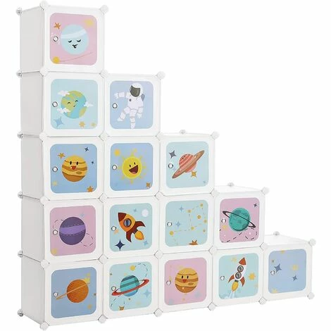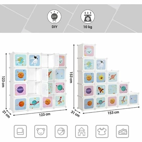Explorez plus de possibilités : Le système par emboîtement permet des possibilités infinies. Vous pouvez installer les cubes comme vous le souhaitez pour avoir un meuble vraiment adapté à votre pièce. En plus, leurs motifs sur le thème de l’espace stimuleront l’imagination des plus petits.