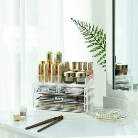 Etes vous en train de chercher un produit de rangement avec la taille idĂ©ale pour ranger tous vos assessoires cosmĂ©tiques? Cet organiseur de maquillage 2 en 1 sera une solution parfecte pour stocker vos poudres, bijoux,pinceaux, rouges Ă lèvres et fonds de teint, etc. En plus, le fait que ce soit transparent permet de localiser directement ce qu’on cherche.Ça prend pas trop de place sans faire” jouet pour enfants”. Tout simplement Ă poser sur votre coiffeuse, dans le salle de bains ou dans votre dressing room. Se faire belle n’a jamais Ă©tĂ© aussi facile !