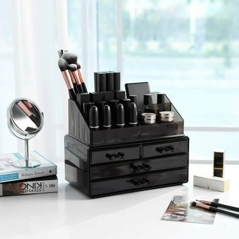 Etes-vous en train de chercher un produit de rangement avec la taille idéale pour ranger tous vos assessoires cosmétiques? Cet organiseur de maquillage 2 en 1 sera une solution parfecte pour stocker vos poudres, bijoux, pinceaux, rouges à lèvres et fonds de teint, etc. En plus, le fait que ce soit transparent permet de localiser directement ce qu’on cherche. Ça prend pas trop de place sans faire” jouet pour enfants”. Tout simplement à poser sur votre coiffeuse, dans le salle de bains ou dans votre dressing-room. Se faire belle n’a jamais été aussi facile !