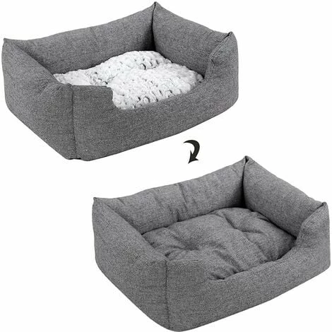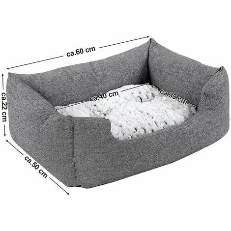 SONGMICS s’engage à vous offrir des produits confortables, fonctionnels, stylés et surtout respectueux du comportements des animaux. Qualité ou style ? Le revêtement en tissu mélangé résiste aux coups de pattes, et sa couleur en gris chiné est très cool.Un côté du coussin est en tissu style ours en peluche, offrant un lieu de repos douillet et confortable.Les bords rehaussés de ce lit pour chien donnent à votre compagnon à quatre pattes l’impression d’être bien protégé tout autour. Ce panier bien rembourré protège votre chien des courants d’air et du froid du sol.Ce lit douillet convient aux chiens jusqu’à 15 kg. Caractéristiques: – Couleur: Gris chiné- Matériaux: Tissu mélangé, tissu style ours en peluche (polyester), coton PP- Dimensions extérieures: 60 x 50 x 22 cm (L x l x H)- Dimensions intérieures: 40 x 33 cm- Poids: 2 kg Livraison: – 1 x Lit pour chien Précautions de SONGMICS: – Évitez tout contact avec des objets pointus ou tranchants.- Il est conseillé de laver ce produit à la main.- Le lit pour chien n’est pas un jouet à mâcher, arrêtez-le quand il mâche.- Le lit reprend sa forme normalement après 2 à 3 jours d’utilisation. Les dimensions du produit reçu pourraient avoir une différence de 3 cm avec les chiffres indiqués sur la page web.- Les anciens ou nouveaux emballages de produits sont envoyés aléatoirement. Nous sommes toujours à la recherche d’optimisation pour vous offrir les meilleurs produits et services. Coussin double face – Le coussin à double faces est amovible. La face en tissu polyester est fraîche et propre pour l’été ; l’autre face en PV polaire est douce et chaude pour l’hiver Dimension extérieure: 60 x 50 x 22 cm ; Dimension intérieure: 40 x 33 cm