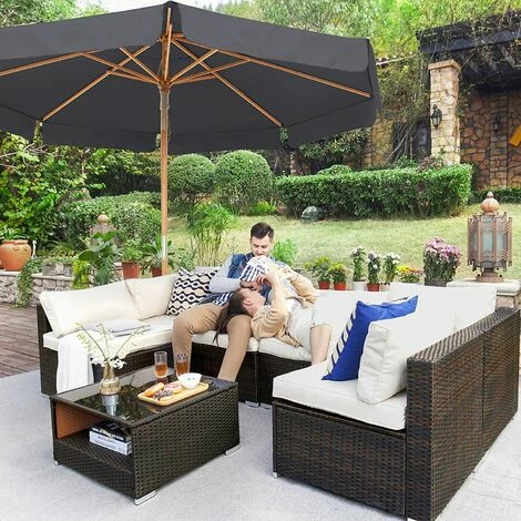 - Que devez-vous faire ? Vissez la partie supérieure du mât à la partie inférieure, fixez le mât à un socle (non inclus), tirez sur la corde pour ouvrir le parapluie et vous serez déjà en train de vous rafraîchir sur votre terrasse !
