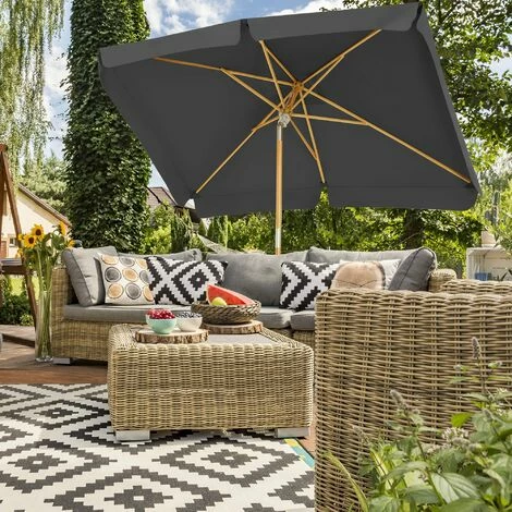 4.Il suit le soleil : La partie pour incliner le parasol est en alliage de zinc de qualité qui résiste à la rouille et à la casse. Grâce à elle, ce parasol rectangulaire de 3 x 2 m est facile à pencher pour obtenir plus d’ombre du matin au soir