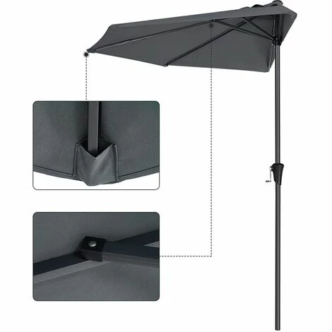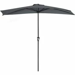 Avec sa conception astucieuse en demi-lune pour s’appuyer contre le mur, ce parasol de 2,7 mètres de diamètre crée plus d’ombre sur le balcon que les parasols ronds classiques. Placé devant une fenêtre ou une porte, il est utile pour empêcher les rayons du soleil d’entrer dans la maison.