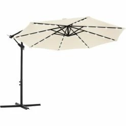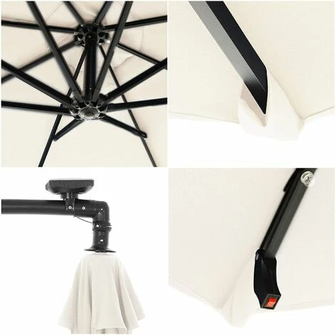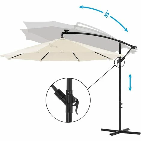 - Vous aimez la lumière tamisée ? Pourquoi pas ! Une oasis de détente doit avoir tout le confort et l’atmosphère que vous appréciez. Les 32 ampoules LED le long des baleines de ce parasol 2-en-1 rendent votre jardin plus agréable le soir