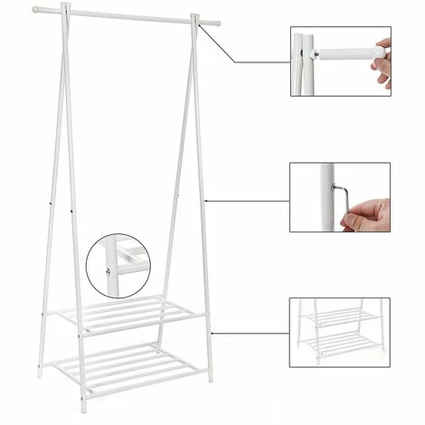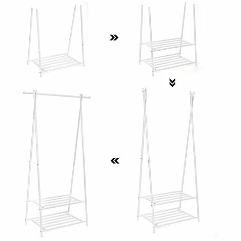 3. Multiusage – Une barre en haut pour accrocher vêtements, chapeaux, cravates, etc. 2 couches en bas pour ranger des chaussures, sacs, boîtes de rangement, etc. Bien optimiser l’espace dans la maison