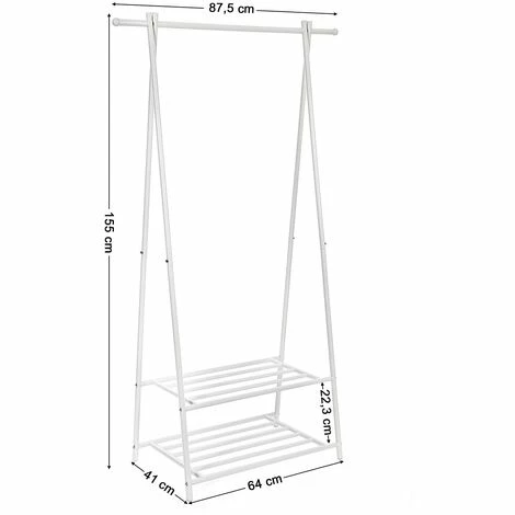 5. Belle apparence – Adapté au salon et à la chambre à coucher, le produit sert à accrocher et ranger vêtements, écharpes, ceintures, etc. En renforçant la stabilité, les 2 couches de tubes métalliques rendent le produit plus beau