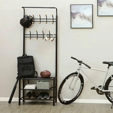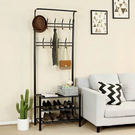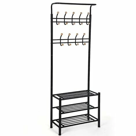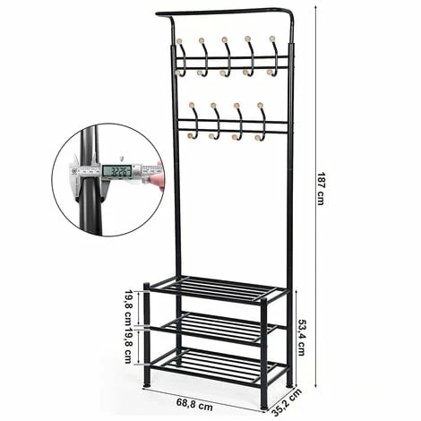 - Multi usage– 3 étagères en bas pour mettre en ordre vos chaussures, sacs et boîtes de rangement; 18 crochets en haute pour accrocher vos vêtements, chapeaux, sacs, etc. Charge maximale pour chaque crochet: 5 kg