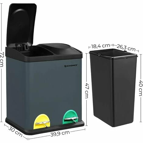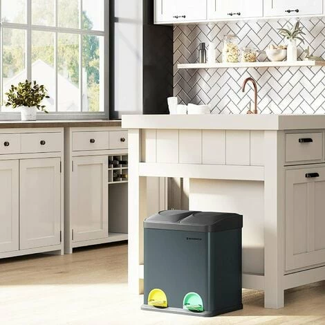 - OUVREZ-LA AVEC LE PIEDS : Il est difficile d’ouvrir le couvercle d’une poubelle avec les mains lorsque qu’on est en pleine préparation d’un repas, pas vrai ? Cette poubelle à 2 pédales vous vient en aide. Elle vous permet de jeter et de recycler sans toucher la couvercle