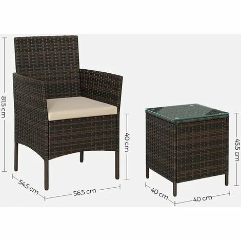 – Matériaux des meubles : Acier traité par poudrage, polyethylene, verre trempé