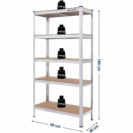 1. CONSTRUCTION MÉTALLIQUE ROBUSTE : L’étagère métallique est construite en acier galvanisé de haute qualité. Le système d’enfichage et les barres transversales lui confèrent une stabilité améliorée. Capacité de charge 875 kg. Dimensions: 90 x 18 x 40 cm (l x H x P).