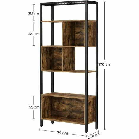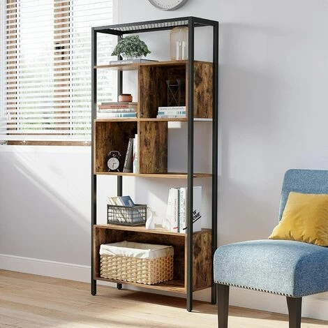 Dites oui au charme rustiqueLa couleur marron rustique et la une surface boisée bois de cette étagère embellissent votre espace de lecture. | Fini les vacillementsAvec un cadre en acier stable et des pieds réglables, cette étagère ne vacille pas, ce qui permet de garder vos bibelots en toute sécurité. | Remplissez-la avec ce que vous voulezDes bibelots, CD, souvenirs, cadres photos, livres… Tous sont fièrement exposés sur cette étagère grandiose. |