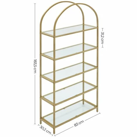 1.UNE VITRINE DIGNE DE CE NOM : Vos collections devraient être exposées sur un présentoir à leur hauteur, tout comme cette étagère qui, avec ses élégants arcs et ses 5 étagères en verre entourés d’acier doré, fera ressortir tout ce qui vous tient à cœur