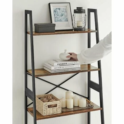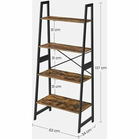 - Design et pratique : Quand le noir mat est associé au marron rustique… Que se passe-t-il ? Le résultat est une étagère échelle industrielle. En plus, cette étagère à 4 niveaux peut accueillir tout ce dont vous avez besoin !