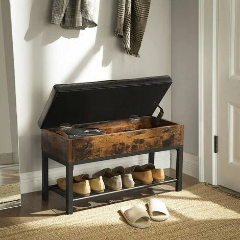 Un siège confortableMettez vos chaussures sans effort en vous asseyant sur ce banc bien rembourrĂ©. | Fini le dĂ©sordre dans vos chaussuresPlacez vos chaussures sur l’Ă©tagère grillagĂ©e de ce banc Ă chaussures et donnez Ă votre entrĂ©e un aspect soignĂ©. | Allons-yOuvrez le couvercle du coffre et dĂ©couvrez encore plus d’espace de rangement ! |