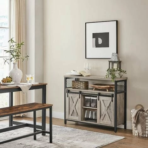 Portes façon grange + panneaux rustiques + métal noir = un buffet qui a du goût