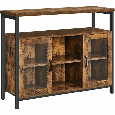 2.On vous sert quoi ? “Je prendrais bien un organisateur à la surface boisée avec un marron rustique envoûtant et un cadre en métal noir industriel, le tout décoré de portes transparentes pour réveiller l’âme de mon salon”