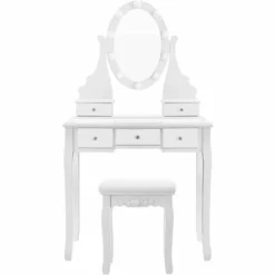 - VOUS ALLEZ L’AIMER: Un look moderne et lumineux, des lignes douces et sinueuses, un miroir ovale en relief… c’est pourquoi vous avez hâte de vous lever le matin, de vous asseoir à cette table de maquillage et de réinventer un nouveau maquillage à chaque fois!