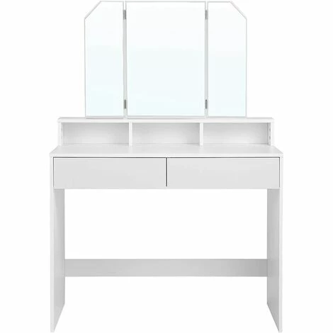 1.PLIEZ LES AILES : Le grand miroir sans cadre de cette table de maquillage se compose de 3 parties. Les deux côtés peuvent être pliés pour que vous puissiez admirer votre magnifique maquillage sous différents angles et vous coiffer plus facilement